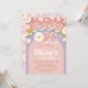 O convite de aniversário com tema retroativo apresenta tons mudados de cores Rainbow e flores Daisy em segundo plano. É perfeito para a festa de aniversário de 1rua de uma menina dos anos 70.