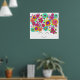 Lindas flores retrorreflectoras de cor brilhante e estilhaçadas decoram a cabeça desse rosto sorridente. Impressão perfeito para iluminar qualquer decoração.