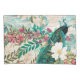Vintage Illustrated Peacock & White and Red Flowers design com um fundo texturizado de gelado e cobertura de escrita manual