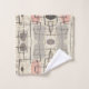 Características ajustadas desta toalha abstrata moderna do tecido do meio século uma réplica de um tecido dos anos 50 do vintage. O fundo é ecru com linhas do preto e do ouro. O tecido igualmente caracteriza formas cinzentas e cor-de-rosa da arte moderna. É uma explosão do passado! Este é o design perfeito para qualquer um que ama artigos com uma sensação retro.