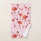 O flamingo representa a autoconfiança, a benevolência, o equilíbrio e a beleza. Design cor-de-rosa, inspirando bonito no grupo de toalha do banheiro.