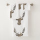 Uma silhueta da cabeça dos cervos da madeira marrom rústica no branco faz a uma grande floresta o grupo temático de toalha, ou escolhe apenas a toalha de mão para a cozinha ou o banho.