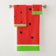 O grupo de toalha da " melancia" olharia grande em todo o banheiro! O excelente dos olhares do grupo junto ou você podem apenas comprar um ou dois do grupo. O grupo vem com uma toalha de banho, a toalha de mão e o washcloth. Faz um grande presente da hospedeira!