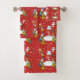 Os duendes do músico e o papai noel de um esqui compo este grupo de toalha do Natal do divertimento. Customizável assim você pode adicionar seu próprio texto e mudar a cor do fundo. Não esqueça o suporte da escova de dentes, a esteira de banho e a cortina de chá de harmonização. Traga nos feriados com este design festivo!