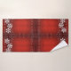 A colagem maravilhosa de uma imagem do vetor de árvores de Natal das estrelas que brilham em um fundo vermelho, com flocos de neve brancos, está neste grupo de toalha de banho dos feriados do Natal. A imagem é dominio público devido aos direitos reservados liberados.