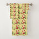 Estas toalhas de banho bonitos caracterizam um teste padrão de repetição de um macaco vermelho com uma cauda de ondulação longa em um ramo de árvore cercado pelas folhas verdes.