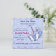 Doce bebê chá convidado com adorável ursinho azul cavalgando em um guarda-chuva, pontos grandes e outros toques especiais. Personalize com suas informações.