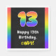 This upbeat and joyful birthday themed paper napkin design features the number “13“ with a colorful rainbow spectrum inspired gradient pattern, along with the message “Happy 13th Birthday,”, and a customizable recipient name. Bold birthday themed paper napkins like these might be used at a party celebrating somebody’s thirteenth birthday. [~Z0000629]