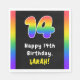 This eye-catching and upbeat birthday paper napkin design features the number “14“ having a vibrant multicolored rainbow spectrum inspired gradient pattern, along with the message “Happy 14th Birthday,”, and an editable recipient name. Vibrant birthday themed paper napkins like these might be used at a birthday party in celebration of somebody’s fourteenth birthday. [~Z0000629]