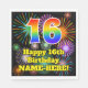 Este divertido e excitante design de guardanapo de papel de aniversário apresenta um grande número "16" com um padrão de inspiração colorida do espectro do arco-íris, juntamente com a mensagem "Feliz 16 de Aniversário", e um nome personalizado. O fundo apresenta um padrão inspirado em fogos de artifício celebratórios coloridos e em explosão. Os guardanapos de papel vibrantes como este podem ser usados ao hospedar uma festa de aniversário para alguém em comemoração do seu 16.º aniversário. [~Z0000574]