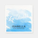 This paper napkin features a modern light blue watercolor painted background. The words "2026 Graduate" appear in a popular handwritten style font. Custom text allows you to add the name of the graduate.
