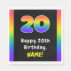 Este ousado e empolgante design de guardanapo de aniversário apresenta o número "20" com um espectro multicolorido de gradiente inspirado no arco-íris, juntamente com a mensagem "Feliz 20 Aniversário", e um nome de destinatário personalizável. Os guardanapos de papel como estes podem ser usados numa festa de aniversário realizada em comemoração do 20 de alguém. [~Z0000629]