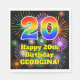 Este animador e divertido design de papel de aniversário guardanapo apresenta um grande número de "20" com um padrão de inspiração colorida do espectro arco-íris, junto com a mensagem "Feliz 20 aniversário", e um nome editável. O fundo apresenta um padrão inspirado de fogos de artifício celebratórios vibrantes e coloridos. Alguns guardanapos de papel temáticos de aniversário como este podem ser usados numa festa para alguém que comemora seu vigésimo aniversário. [~Z0000574]