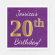 Este simples design de guardanapo de papel apresenta uma mensagem como "Aniversário 20 de Jessica!", com o "20" a ter uma aparência falsa de ouro, sobre um fundo de cor roxa. O nome pode ser personalizado. Pode ser usado numa festa de aniversário para alguém que comemora seu vigésimo aniversário. [~Z0000085]