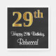 Este na moda, luxuoso e sofisticado design de guardanapo de papel com tema de aniversário apresenta um grande número ordinal "29º" com um aspecto falsa/imitado inspirado em ouro, mais a mensagem de saudação de aniversário "Feliz 29º Aniversário" e um nome editável numa letra estilo script. Também tem um fundo de cor preta. Os guardanapos de papel como este podem ser usados para celebrar o vigésimo nono aniversário de alguém. [~Z0000516]