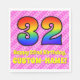 Este design de guardanapo de papel, tema de 32 anos, otimista e festivo, apresenta um grande número de "32", tendo um padrão colorido inspirado pela aparência de um espectro de arco-íris. Também apresenta a mensagem "Feliz 32º Aniversário", e um nome editável. O fundo apresenta um padrão cor-de-rosa escuro e de faixas de rosa claro contendo formas cardíacas cor-de-rosa amorosas. Os guardanapos de papel personalizados e divertidos como este podem ser usados numa festa que está sendo realizada para comemorar os trinta e dois anos de alguém. [~Z0000417]