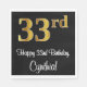 Este elegante, luxuoso e sofisticado design de guardanapo de papel com tema de aniversário apresenta um grande número ordinal "33. º" com um padrão de gradiente de imitação/falsa inspirado em ouro, além da mensagem de saudação de aniversário "Feliz 33.º Aniversário" e um nome personalizado numa letra estilo script. Também tem um fundo de cor preta. Os guardanapos de papel com tema de aniversário como este podem ser uma maneira divertida de celebrar o 33º aniversário de alguém. [~Z0000516]