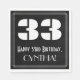 Este 1920 de 1930s parece inspirado no estilo de vintage, estilo de aniversário, o temed paper napkin design apresenta um grande deco de arte, parece inspirado número "33", a mensagem "Happy 33rd Birthday,", um nome personalizado e um padrão de borda que consiste em linhas finas. Os guardanapos de papel com tema de aniversário como este podem ser divertidos de usar numa festa que está a ser realizada para celebrar os trinta e três anos de alguém. [~Z0000494]