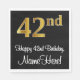 Este elegante, sofisticado, e na moda, design de guardanapo de papel temático de aniversário apresenta um grande número ordinal "42", com uma imitação/aparência falsa de ouro, juntamente com a mensagem de saudação de aniversário "Feliz 42.º Aniversário", e um nome editável em uma fonte estilo script. O fundo é preto colorido. Os guardanapos de papel luxuosos como este podem ser usados ao hospedar uma festa para alguém em comemoração do seu 42º aniversário. [~Z0000516]
