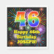 Este animado e divertido design de papel de aniversário guardanapo apresenta um grande número de "46" tendo um padrão de inspiração colorida de gradiente do arco-íris. Também apresenta a mensagem "Feliz 46º aniversário", e um nome editável. O plano de fundo apresenta um padrão interessante e colorido inspirado pela aparência de fogos de artifício comemorativos que explodem. Guardanapos de papel coloridos como este podem ser divertidos de usar numa festa de aniversário que está sendo realizada para alguém que está comemorando seu 46º aniversário. [~Z0000574]