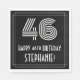 Este estilo 1920/1930 inspirou o papel de aniversário napkin design apresenta um grande estilo de Art Deco inspirado número "46", a mensagem "FELIZ 46º ANIVERSÁRIO", um nome editável e um padrão de borda composto por linhas. Os guardanapos de papel com tema de aniversário como este podem ser usados numa festa que comemora os quarenta e seis anos de alguém. [~Z0000395]