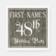 Este elaborado e luxuoso design de guardanapo de papel com tema de festa de aniversário apresenta um nome personalizado e a mensagem "48ª Festa de aniversário". O grande número "48º" e as palavras "Festa de aniversário" estão no texto no estilo de script do ornamentado. O fundo tem uma imitação/padrão falsa inspirado em madeira. Os guardanapos de papel elegantes como este podem ser usados numa celebração de aniversário que está a ser realizada para honrar os quarenta e oitavo anos de alguém. [~Z0000564]
