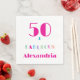 Bright pink with pastel colors on white birthday invitation napkin to celebrate a milestone in vibrant style with our 50 & Fabulous customizable birthday napkin! Featuring bold, modern typography in a rainbow of cheerful pastel colors, this eye-catching napkin sets the perfect tone for a fun and fabulous 50th birthday celebration. Personalize the party details to match your event — whether it’s a chic cocktail soirée, backyard bash, or glamorous dinner party. Don't forget to check out our matching products to make the day even more special!