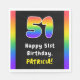 This cheerful and bold birthday paper napkin design features the number “51“ with a vibrant multicolored rainbow spectrum inspired gradient pattern, along with the message “Happy 51st Birthday,”, and a customizable recipient name. Birthday themed paper napkins like these might be used at a birthday party celebrating somebody’s fifty first birthday. [~Z0000629]