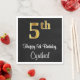 Este elegante, sofisticado, e na moda, design de guardanapo de papel temático de aniversário apresenta um grande número ordinal "5" com um padrão de gradiente tipo "faux"/imitação dourado, juntamente com a mensagem de saudação de aniversário "Feliz aniversário do 5", e um nome personalizado numa letra estilo script. O fundo é preto colorido. Os guardanapos de papel elegantes como este podem ser divertidos de usar numa festa para alguém que comemora o seu aniversário de 5. [~Z0000516]