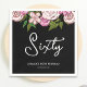Os guardanapos de papel floral preto modernos para uma comemoração da 60ª festa de aniversário. Ilustrada e projetada por Patricia Alvarez.