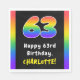Este vibrante e empolgante design de guardanapo de papel de aniversário apresenta o número "63" com um espectro de arco-íris vibrante inspirado em um padrão de gradiente, junto com a mensagem "Feliz 63º aniversário", e um nome de destinatário personalizado. Os guardanapos de papel alegres como estes podem ser usados ao hospedar uma festa para alguém em comemoração de seus sessenta e três anos. [~Z0000629]