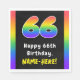 Este feliz e atraente design de guardanapo de papel temático de aniversário apresenta um grande número "66" com um espectro multicolorido de arco-íris inspirado em gradação, juntamente com a mensagem "Feliz 66º aniversário", e um nome de destinatário editável. Os guardanapos de papel com tema de aniversário como este podem ser divertidos de usar numa festa de aniversário que está sendo realizada para alguém que está celebrando seus sessenta e seis anos. [~Z0000629]