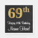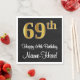Este luxuoso, sofisticado e elegante design de guardanapo de papel temático de aniversário apresenta um grande número ordinal "69º" com um padrão de gradação tipo ouro falso/imitação, além da mensagem de saudação de aniversário "Feliz 69º aniversário" e um nome personalizado em uma fonte estilo script. O fundo é preto colorido. Os guardanapos de papel como este podem ser usados para celebrar o sexagésimo nono aniversário de alguém. [~Z0000516]