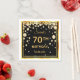 Um guardanapo para uma elegante festa de aniversário 70 de preto e ouro. Modelos para nome, idade e data da parte. Letras coloridas com ouro. Cor de fundo preta e uma imagem falsa de ouro. Com ouros brilhantes. (sem diamantes reais) O fundo é transparente para que você possa mudar a cor para corresponder ao seu tema.