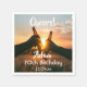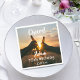 Um guardanapo para uma festa de aniversário 70 para uma cara. Foto de duas mãos segurando garrafas de cerveja contra o pôr do sol da noite. Guarde a foto ou adicione a sua. Com o texto: Saúde, modelos para um nome com 70 anos e data. Data de nascimento ou data da festa.