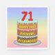 Este design de guardanapo de papel, com tema de aniversário, sofisticado e colorido apresenta uma representação em estilo cartoon de um bolo de aniversário de três níveis com velas em forma de número, mostrando a idade "71", juntamente com a mensagem "HAPPY 71RUA BIRTHDAY", e um nome de destinatário personalizado. O plano de fundo apresenta um espectro de arco-íris pastel de várias cores inspirado em gradiente. Os guardanapos de papel como estes podem ser usados numa festa realizada em comemoração do aniversário de 710 ruas de alguém. [~Z0000623]