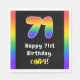 This upbeat and cheerful birthday themed paper napkin design features the number “71“ with a multicolor rainbow spectrum inspired gradient pattern, along with the message “Happy 71st Birthday,”, and a custom recipient name. Paper napkins like these might be used at a party for somebody who is celebrating their seventy first birthday. [~Z0000629]