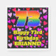 Este feliz e alegre design de papel de aniversário guardanapo apresenta um grande número "73" com um padrão inspirado no gradiente do espectro arco-íris, juntamente com a mensagem "Feliz 73º Aniversário", e um nome personalizado. O fundo apresenta um padrão de formas cardíacas vermelhas, cor-de-rosa e roxas. Guardanapos de papel adoráveis e alegres como este podem ser divertidos de usar numa festa de aniversário/celebração para celebrar o 73º aniversário de alguém. [~Z0000550]