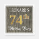 Este design de guardanapo de papel com temas opulentes e de aniversário de ornamentado apresenta um nome personalizado e a mensagem "74ª Festa de aniversário". O grande número "74.º" tem um padrão de coloração de imitação/falsa inspirado em ouro, as palavras "Festa de aniversário" estão em texto luxuoso, no estilo de escrita, e o fundo tem um padrão de imitação/falsa inspirado em madeira. Os guardanapos de papel luxuosos e ricos como este podem ser úteis numa festa de aniversário/celebração que está a ser realizada em comemoração dos setenta e quatro anos de alguém. [~Z0000566]