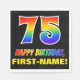 Este animado, colorido e divertido design de aniversário, napkin, apresenta um grande número de "75" e a mensagem "FELIZ ANIVERSÁRIO", ambos coloridos com um padrão inspirado no gradiente do espectro do arco-íris, juntamente com um nome ousado de destinatário amarelo editável. O fundo é preto colorido. Alguns guardanapos de papel personalizados e divertidos como este podem ser usados em uma festa de aniversário sendo realizada para comemorar o 75º aniversário de alguém. [~Z0000476]