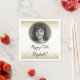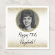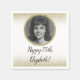 This pretty white and gold 75th birthday napkin includes a customizable photo with a gold border and gold glitter edges, and will set a fun and celebratory tone. Note: The foil border is printed and not actual shiny foil!