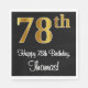 Este sofisticado, luxuoso e elegante design de guardanapo de papel com tema de aniversário apresenta um grande número ordinal "78º" com uma imitação/aparência falsa de ouro, mais a mensagem de saudação de aniversário "Feliz 78º aniversário" e um nome personalizável em uma fonte estilo script. Também tem um fundo de cor preta. Os guardanapos de papel com tema de aniversário como este podem ser usados numa festa de aniversário que comemora os setenta e oito anos de alguém. [~Z0000516]