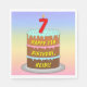 Este design de guardanapo de papel temático e divertido aniversário apresenta uma representação em estilo cartoon de um bolo de aniversário de três níveis, com uma vela em forma de número por cima, mostrando a idade "7", juntamente com a mensagem "FELIZ 7 BIRTHDAY", e um nome de destinatário editável. O fundo tem um espectro de arco-íris pastel de várias cores inspirado em um padrão de gradiente. Alguns guardanapos de papel temáticos de aniversário como estes podem ser usados numa festa que comemora o sétimo aniversário de alguém. [~Z0000623]