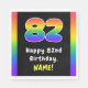 Este vibrante e alegre design de papel de aniversário, guardanapo, apresenta um grande número "82" com um vibrante espectro multicolorido de arco-íris inspirado em gradiente, juntamente com a mensagem "Feliz 82.º Aniversário", e um nome de destinatário personalizado. Feliz aniversário, guardanapos de papel como estes podem ser usados numa festa de aniversário celebrando o oitenta segundo aniversário de alguém. [~Z0000629]