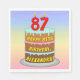 Este design de guardanapo de papel, tema de aniversário, de alta qualidade e colorido, apresenta uma representação em estilo cartoon de um bolo de aniversário de três níveis com velas em forma numérica no topo, mostrando o número "87", juntamente com a mensagem "HAPPY 87TH BIRTHDAY", e um nome de destinatário personalizado. O fundo apresenta um espectro multicolorido de arco-íris pastel inspirado em gradiente. Os guardanapos de papel como estes podem ser usados numa festa de aniversário realizada em comemoração do 87º aniversário de alguém. [~Z0000623]