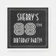 Este design de guardanapo de papel festa de aniversário de oitenta e oito na moda apresenta um nome personalizado, um intrincado deco de arte parece inspirado número "88º", a mensagem "FESTA DE ANIVERSÁRIO!" e um padrão de borda que consiste em linhas. Ele apresenta um fundo preto por padrão, mas pode ser personalizado para uma cor diferente, se desejado. Os guardanapos de papel temáticos de aniversário luxuosos como estes podem ser usados numa festa para celebrar o oitavo aniversário de alguém. [~Z0000616]