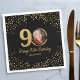 Guardanapo De Papel 90 Birthday Foto Elegante Negra Dourada Brilhante