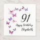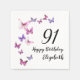 This pretty and whimsical 91st birthday napkin is perfect for a nice party and will set a fun and celebratory tone. This design features pink and purple butterflies, and is a nice feminine choice for a special event to celebrate a milestone birthday. Customize for your own birthday year, and search for "91" in my shop to see coordinating designs.