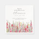 Mesa perfeita para uma festa de aniversário de agosto. O gladiolus rosa é a flor de nascimento daquele mês. Ele forma uma bonito borda de aquarela neste guardanapo personalizado floral. O nome, a idade e a data de nascimento do hóspede de aniversário são colocados por cima dele usando caligrafia e tipografia elegantes. Todo texto é editável.