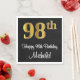 Este luxuoso, na moda e sofisticado design de guardanapo de papel temático de aniversário apresenta um grande número ordinal "98º" com um padrão de gradiente tipo ouro imitação/falsa, mais a mensagem de saudação de aniversário "Feliz 98º aniversário" e um nome personalizável em uma fonte estilo script. Também tem um fundo de cor preta. Os sofisticados guardanapos de papel temáticos como este podem ser usados numa festa para alguém que comemora seu 98º aniversário. [~Z0000516]